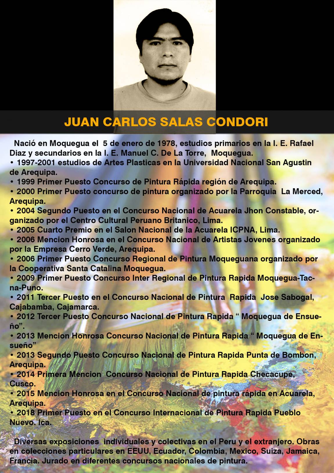 El Museo Contisuyo por el 480 aniversario de la ciudad de Moquegua viene presentando la exhibición pictórica titulada "Moquegua Tradicional", del artista plástico moqueguano Juan Carlos Salas Condori. Los invitamos a visitar la galería de Arte del Museo Contisuyo en horarios de atención al público de 8:30 am a 12:30 pm